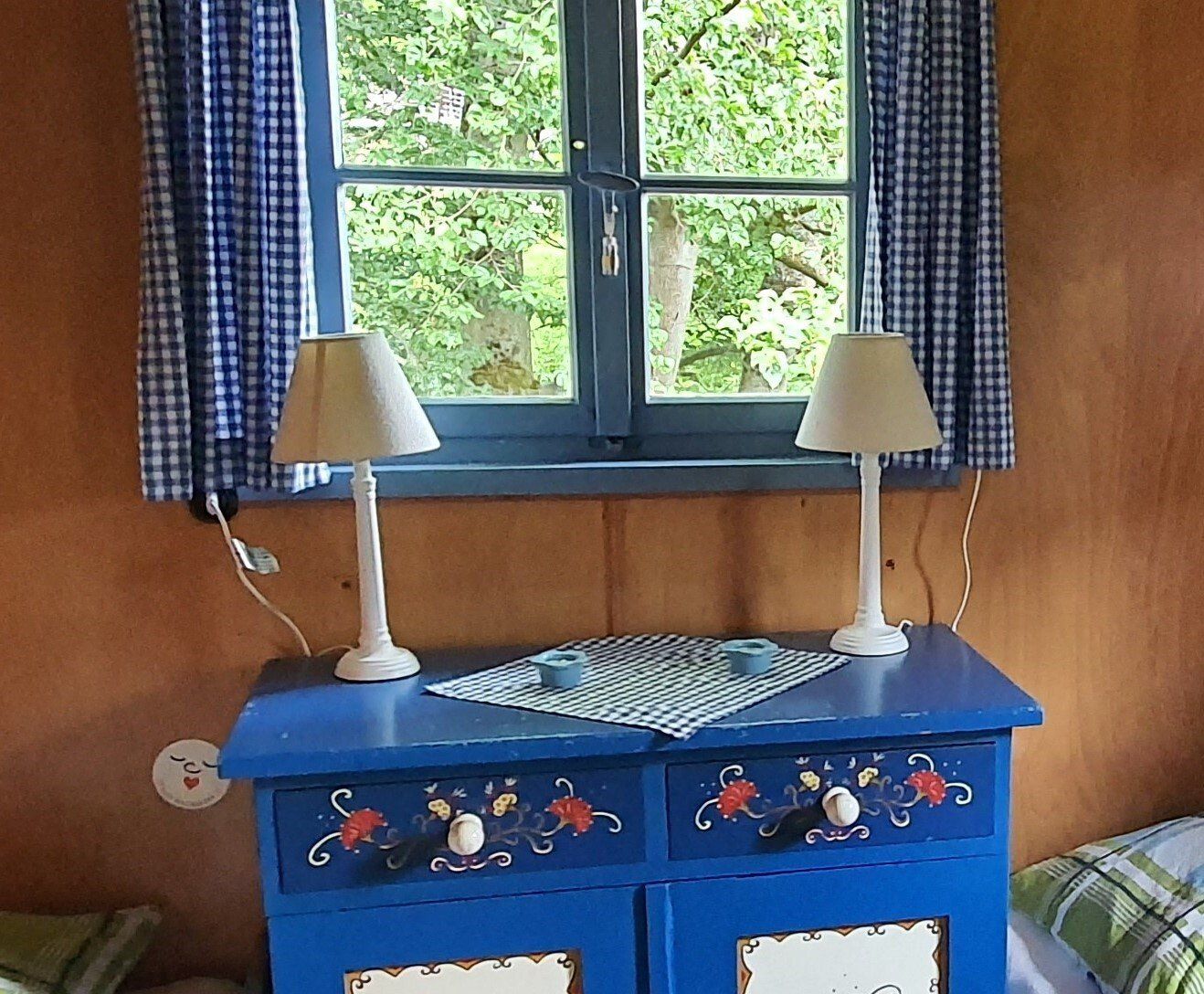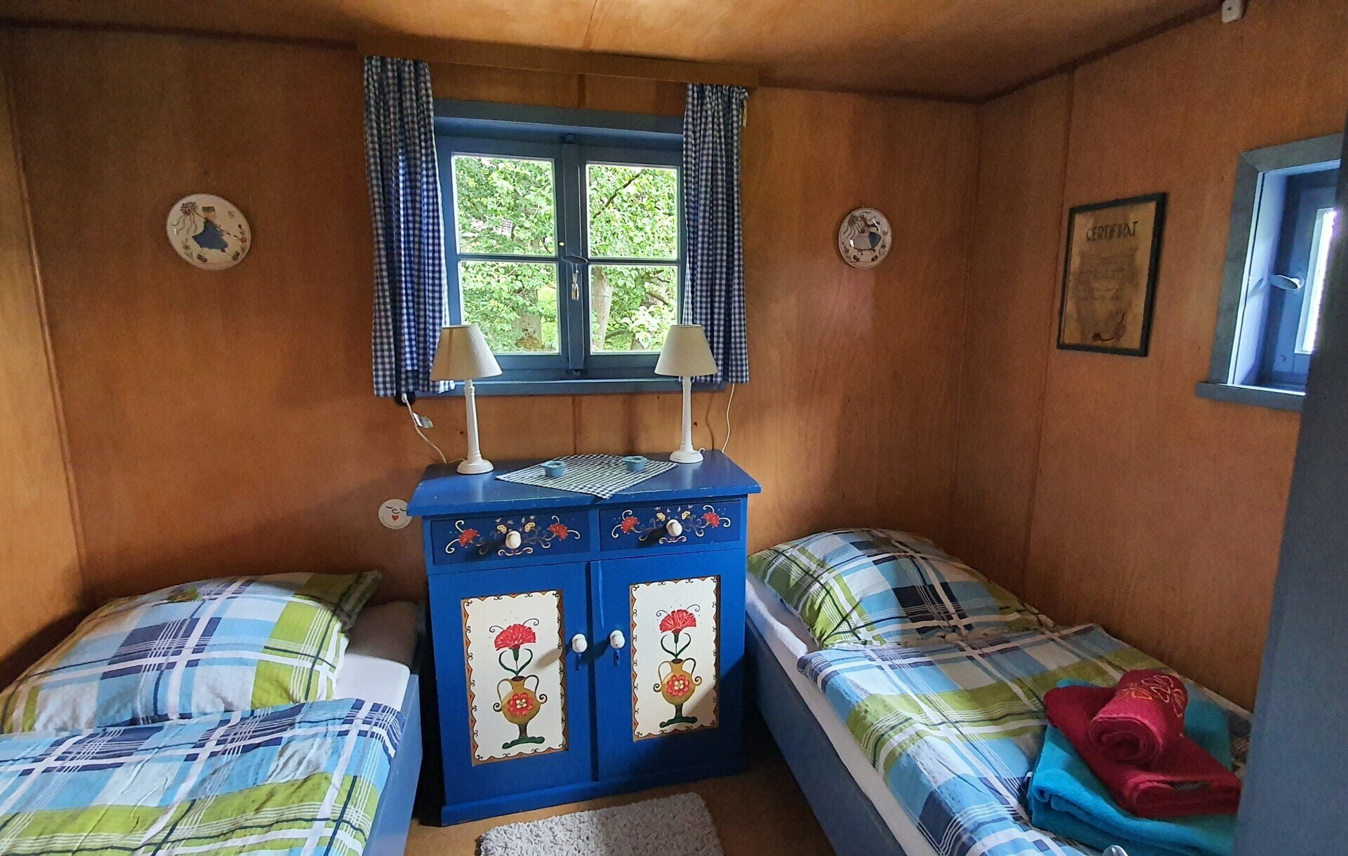 ... bietet eine entspannte Nachtruhe für 2 Personen in 2 Schlafkojen (je 90x200) rechts und links im Raum angeordnet. Durch das kleine Seitenfenster haben Sie Blick auf den See. Die Fenster sind durch Außenklappläden abdunkelbar.