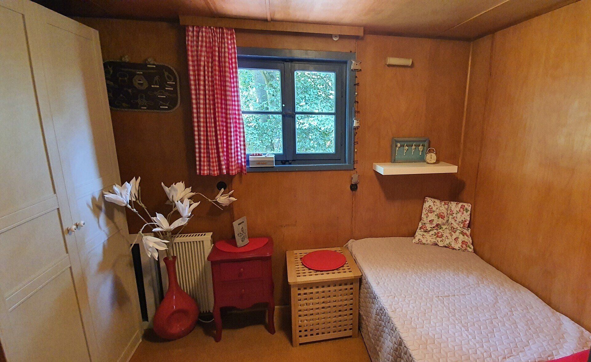 ... bietet eine entspannte Nachtruhe für eine weitere Person. Das Fenster ist durch Außenklappläden abdunkelbar.