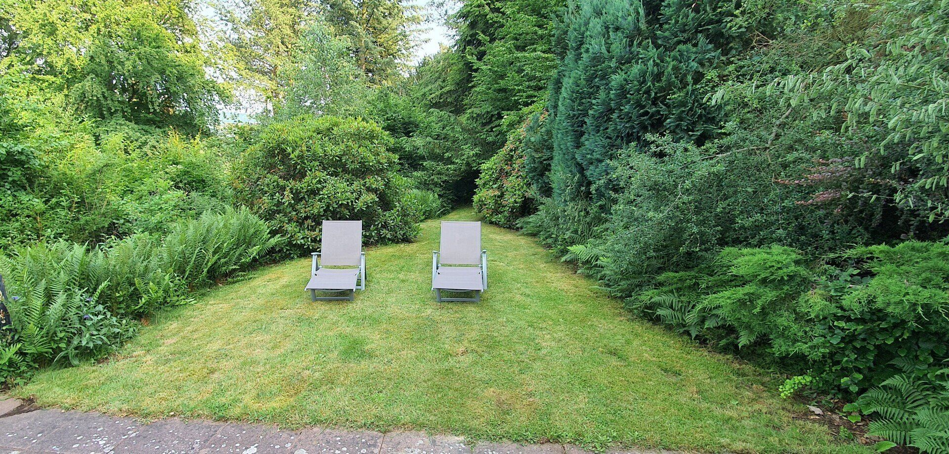 ... umfasst naturbelassene 1250 qm mit großen alten Buchen und Eichen. In dieser Natur pur huschen am Abend die Fledermäuse vorbei, können Sie Eichhörnchen, Vögel und manchmal sogar die Rehe und Waschbären beobachten.